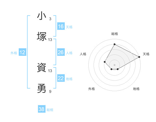 小塚 資勇さんの総格は38画の4点!
