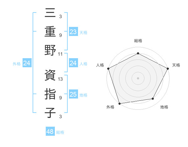 三重野 資指子さんを姓名の画数から五運を鑑定