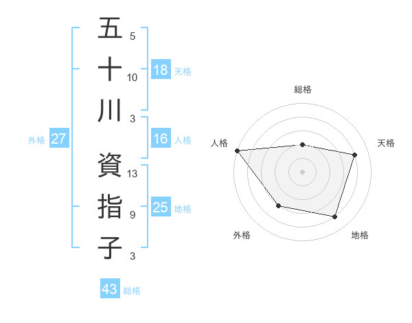 五十川 資指子さんを姓名の画数から五運を鑑定