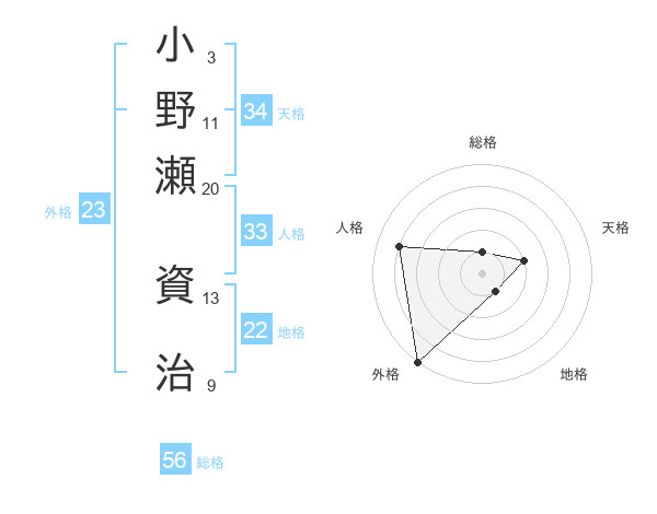 小野瀬 資治さんを姓名の画数から五運を鑑定