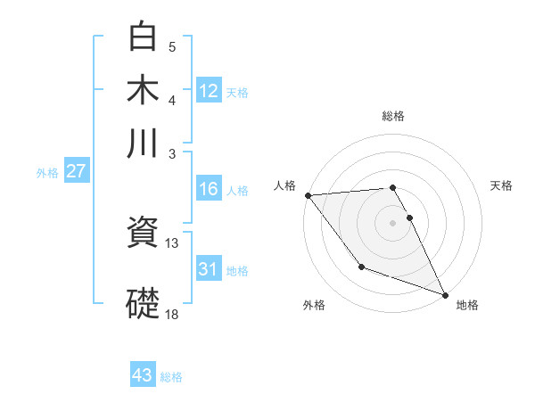 白木川 資礎さんの総格は43画の2点!