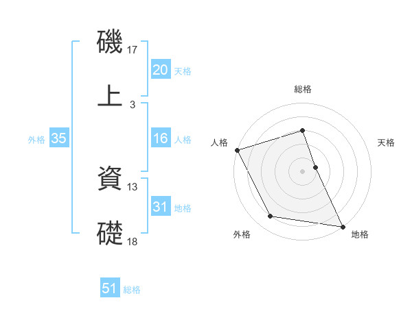 磯上 資礎さんを姓名の画数から五運を鑑定