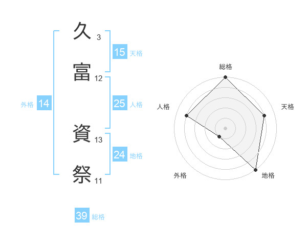 久富 資祭さんの総格は39画の5点!