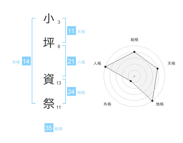 小坪 資祭さんの総格は35画の4点!