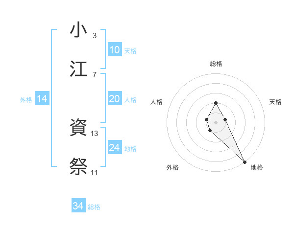小江 資祭さんの総格は34画の2点!