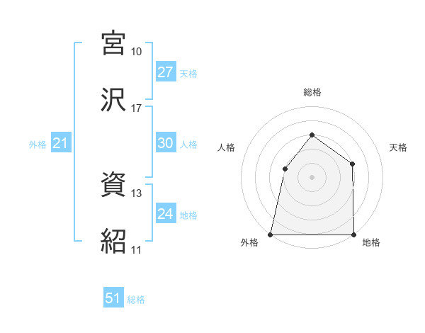 宮沢 資紹さんを姓名の画数から五運を鑑定