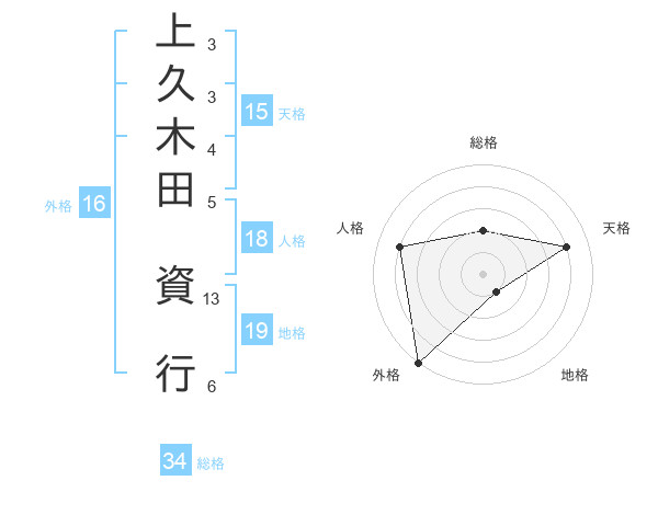 上久木田 資行さんを姓名の画数から五運を鑑定