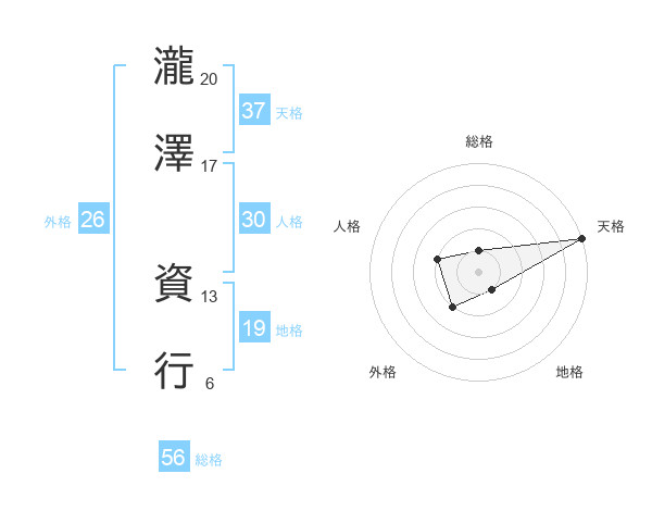 瀧澤 資行さんを姓名の画数から五運を鑑定
