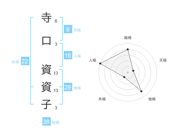 寺口 資資子さんの総格は38画の4点!