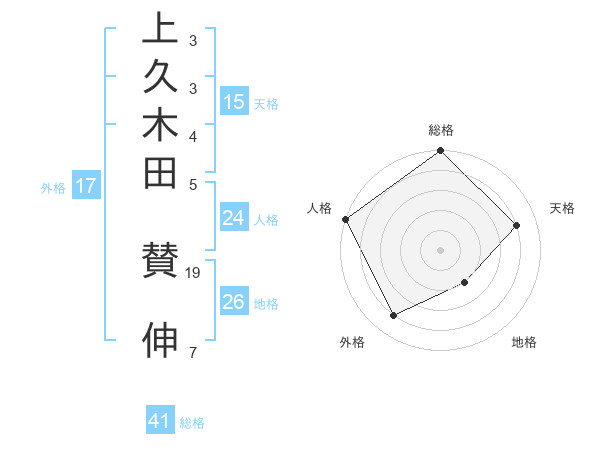 上久木田 賛伸さんを姓名の画数から五運を鑑定