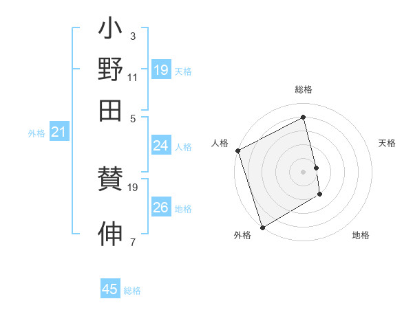 小野田 賛伸さんを姓名の画数から五運を鑑定