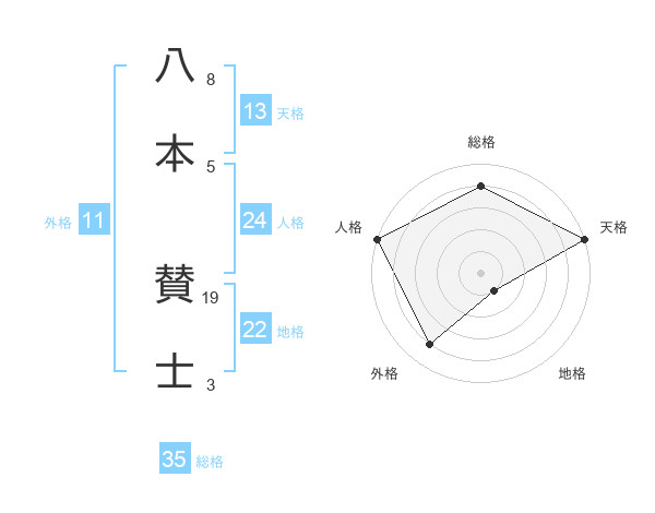 八本 賛士さんの総格は35画の4点!