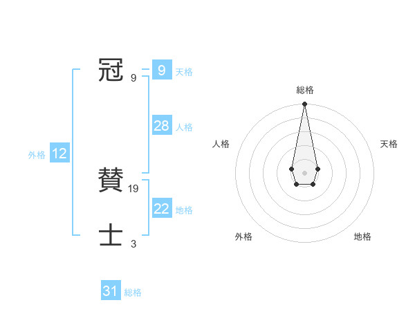 冠 賛士さんの総格は31画の5点!