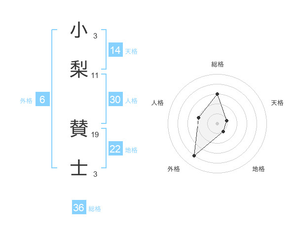 小梨 賛士さんの天格は14画の1点!