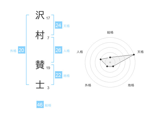 沢村 賛士さんの総格は46画の1点!