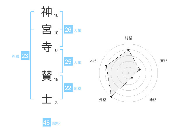 神宮寺 賛士さんの天格は26画の2点!