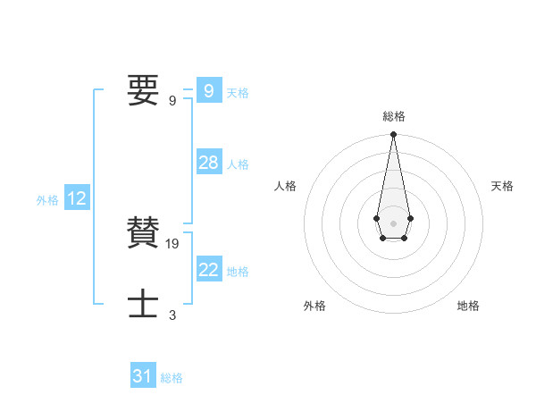 要 賛士さんの総格は31画の5点!
