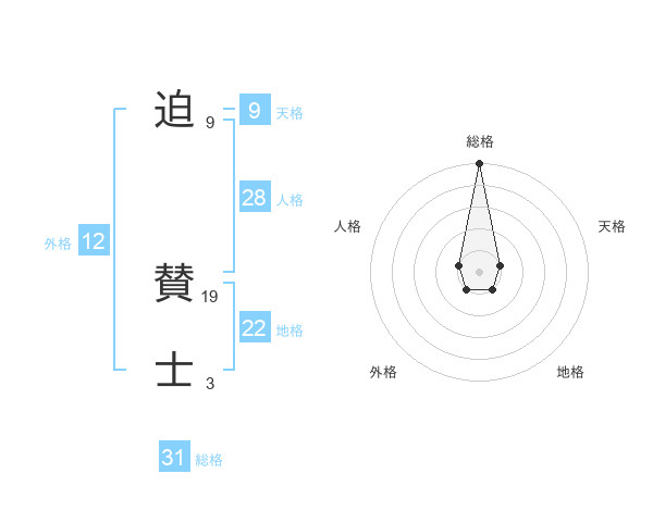 迫 賛士さんの総格は31画の5点!