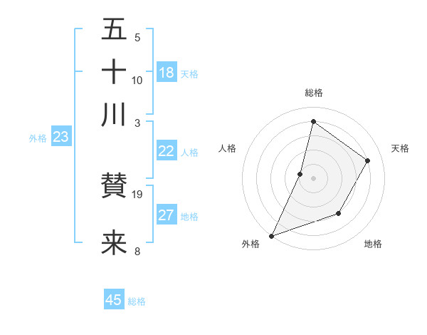 五十川 賛来さんを姓名の画数から五運を鑑定