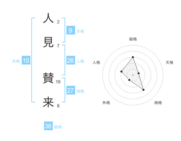 人見 賛来さんの総格は36画の3点!
