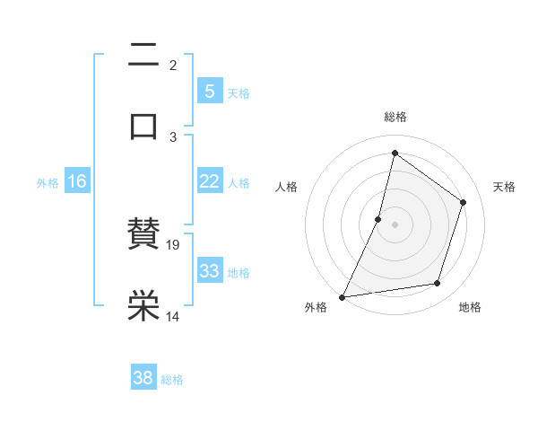 二口 賛栄さんを姓名の画数から五運を鑑定