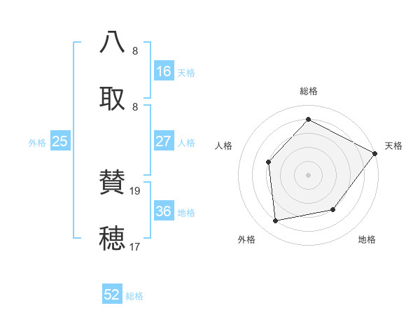 八取 賛穂さんの総格は52画の4点!