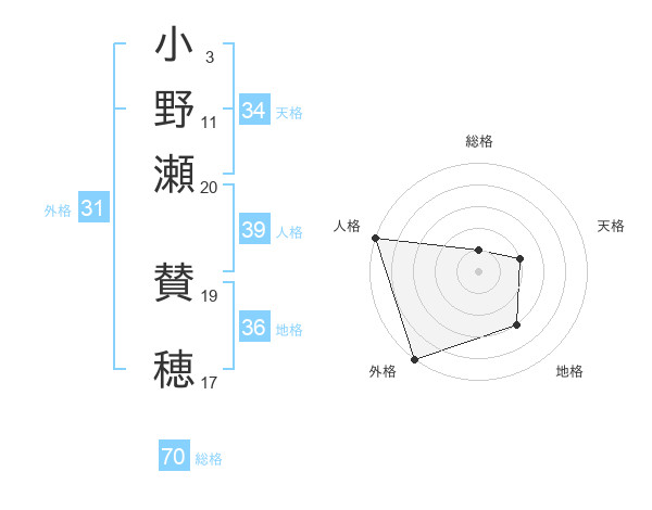 小野瀬 賛穂さんを姓名の画数から五運を鑑定