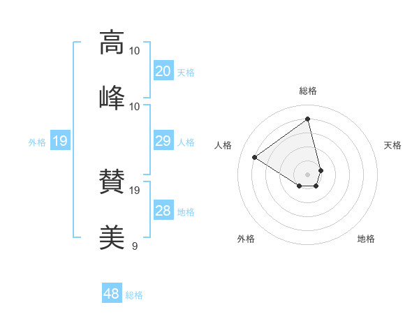 高峰 賛美さんの外格は19画の1点!