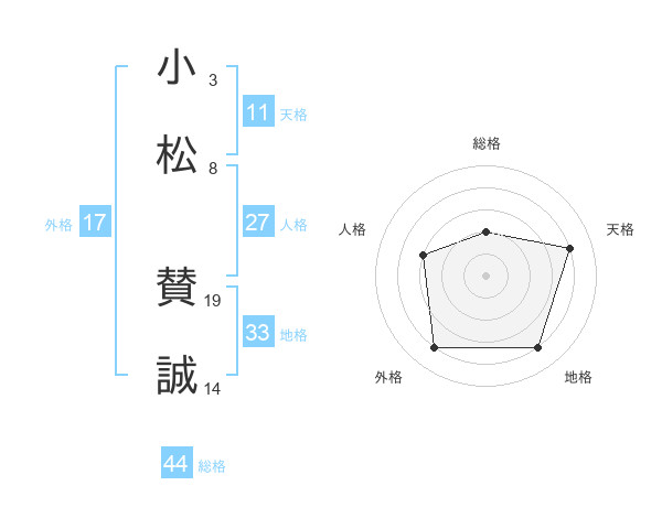 小松 賛誠さんを姓名の画数から五運を鑑定