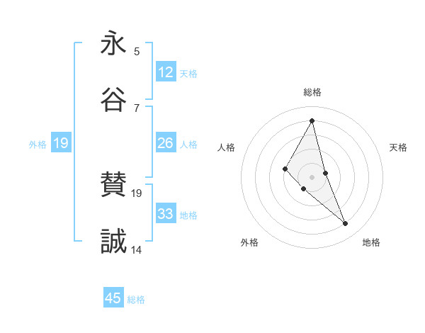 永谷 賛誠さんを姓名の画数から五運を鑑定