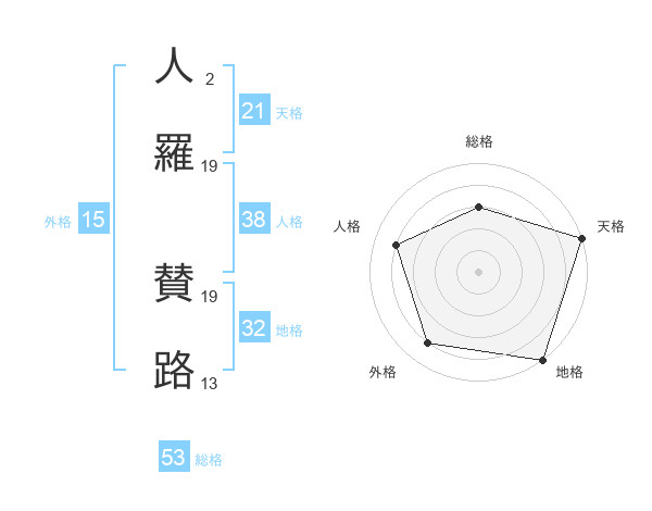 人羅 賛路さんを姓名の画数から五運を鑑定