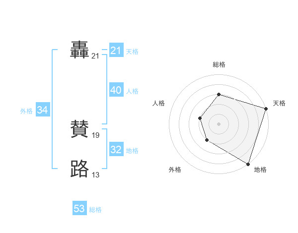 轟 賛路さんの天格は21画の5点!