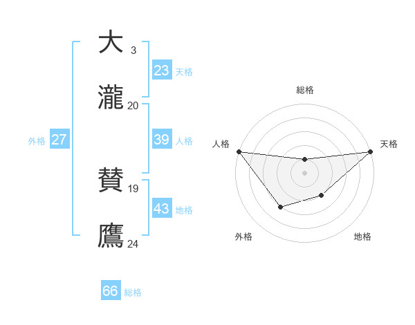 大瀧 賛鷹さんを姓名の画数から五運を鑑定