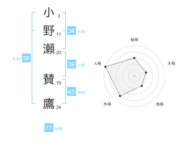 小野瀬 賛鷹さんを姓名の画数から五運を鑑定