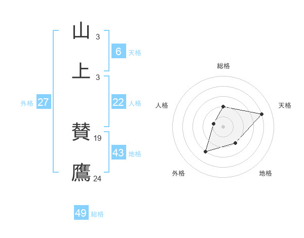 山上 賛鷹さんを姓名の画数から五運を鑑定