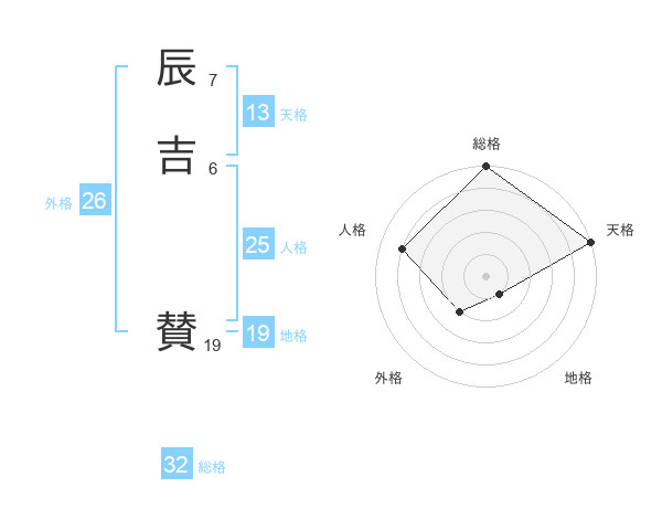 辰吉 賛さんの天格は13画の5点!