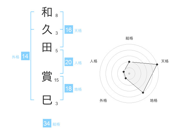 和久田 賞巳さんを姓名の画数から五運を鑑定