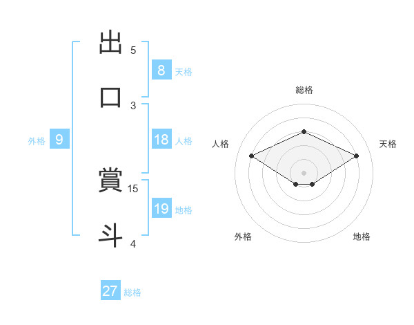 出口 賞斗さんの総格は27画の3点!