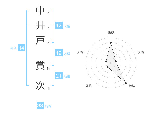 中井戸 賞次さんを姓名の画数から五運を鑑定