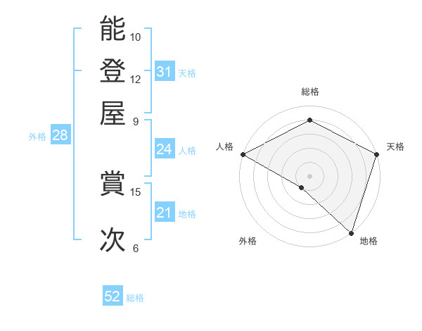 能登屋 賞次さんを姓名の画数から五運を鑑定