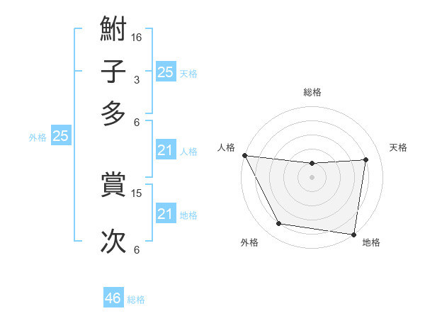 鮒子多 賞次さんを姓名の画数から五運を鑑定