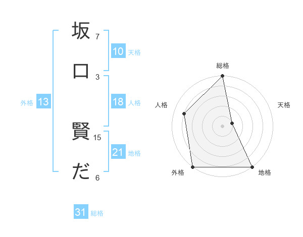 坂口 賢ださんを姓名の画数から五運を鑑定