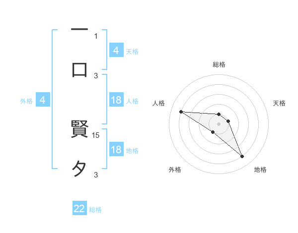 一口 賢タさんの地格は18画の4点!
