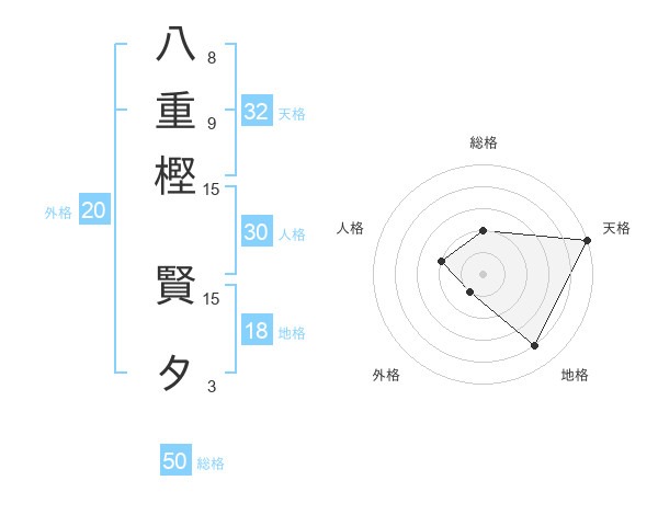 八重樫 賢タさんを姓名の画数から五運を鑑定