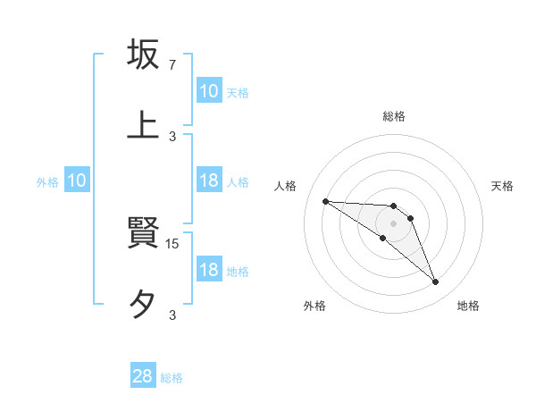 坂上 賢タさんの総格は28画の1点!