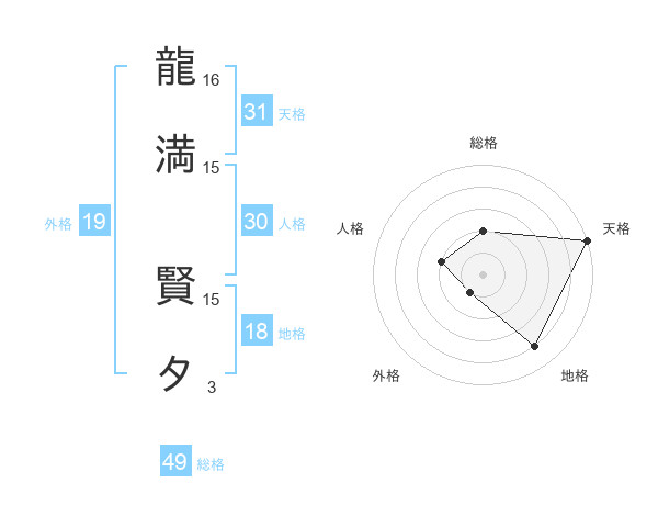 龍満 賢タさんの総格は49画の2点!