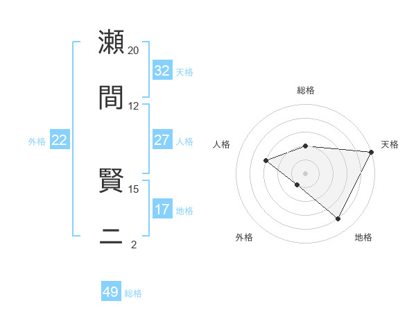 瀬間 賢ニさんを姓名の画数から五運を鑑定