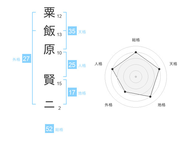 粟飯原 賢ニさんを姓名の画数から五運を鑑定