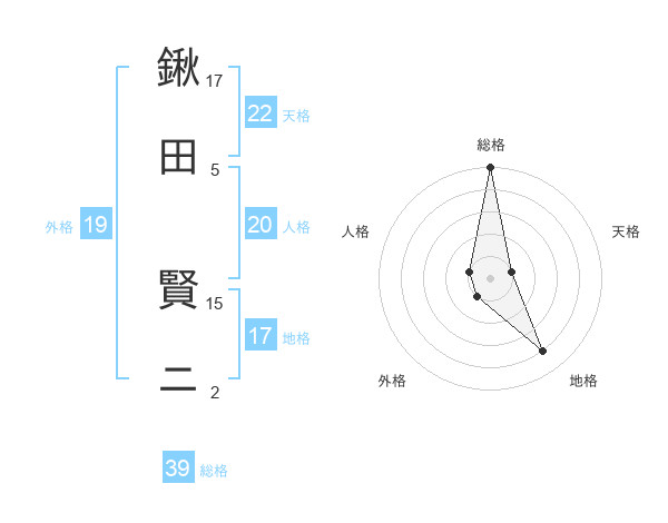 鍬田 賢ニさんを姓名の画数から五運を鑑定