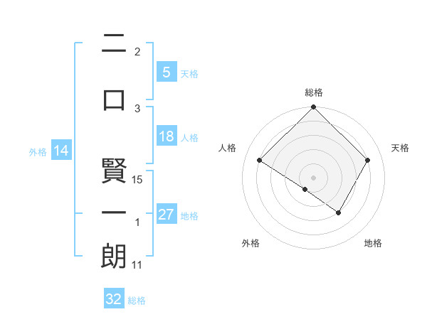 二口 賢一朗さんを姓名の画数から五運を鑑定